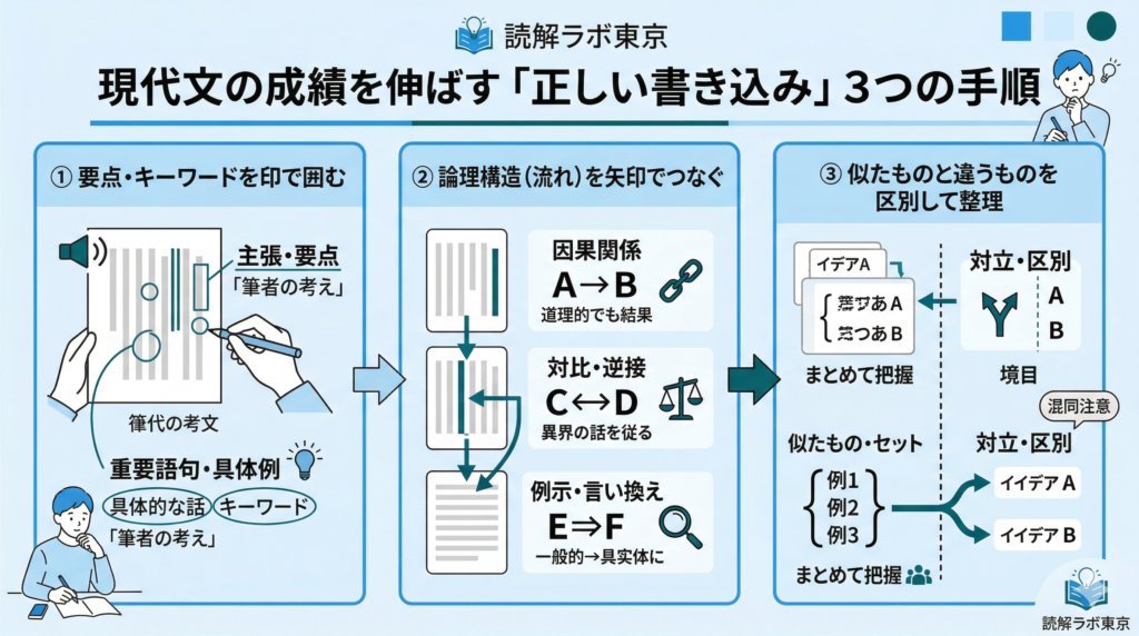 現代文の成績を伸ばす「正しい書き込み」3つの手順