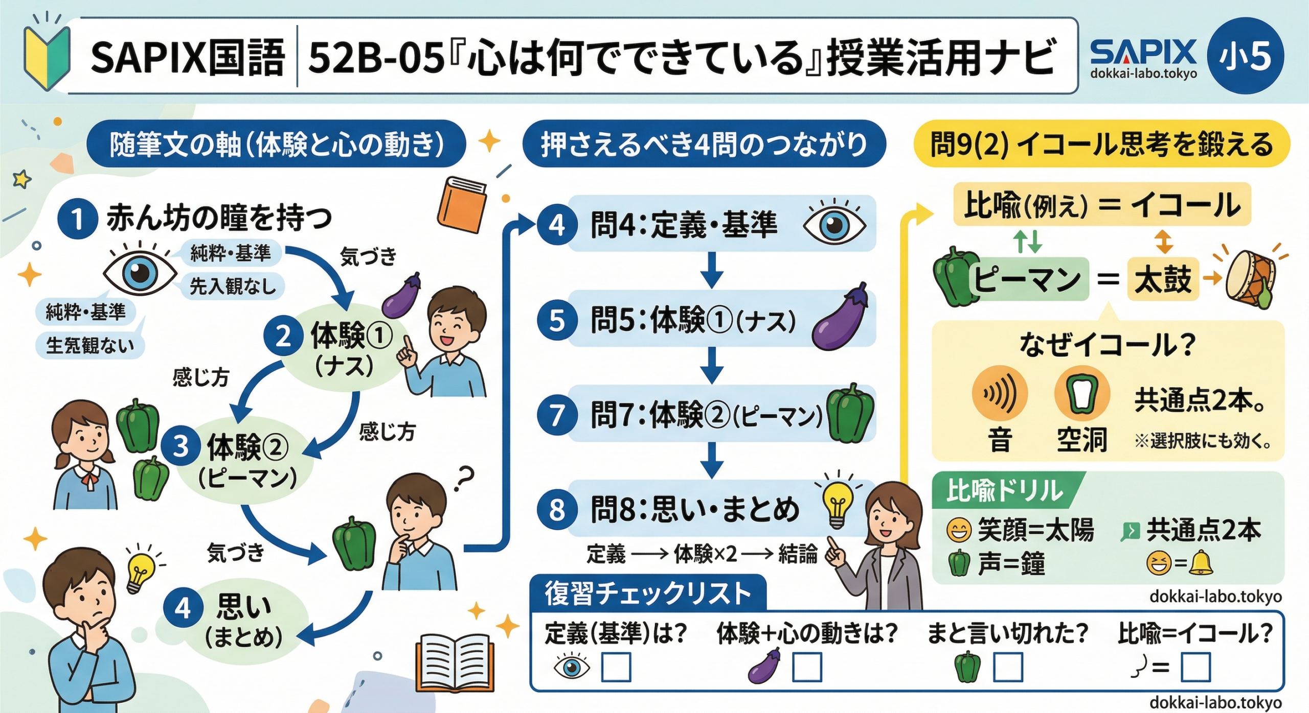 2026年1月14日wpmaster サピックス・小5国語の要点(52B-05)SAPIX国語(小5) 52B-05 SAPIX国語授業の活用法:52B-05「心は何でできている」 ──授業で扱う4問のつなげ方+比喩(問9(2))で「イコール思考」を鍛える 動画の要点を「授業→復習」で再現できる形に […]