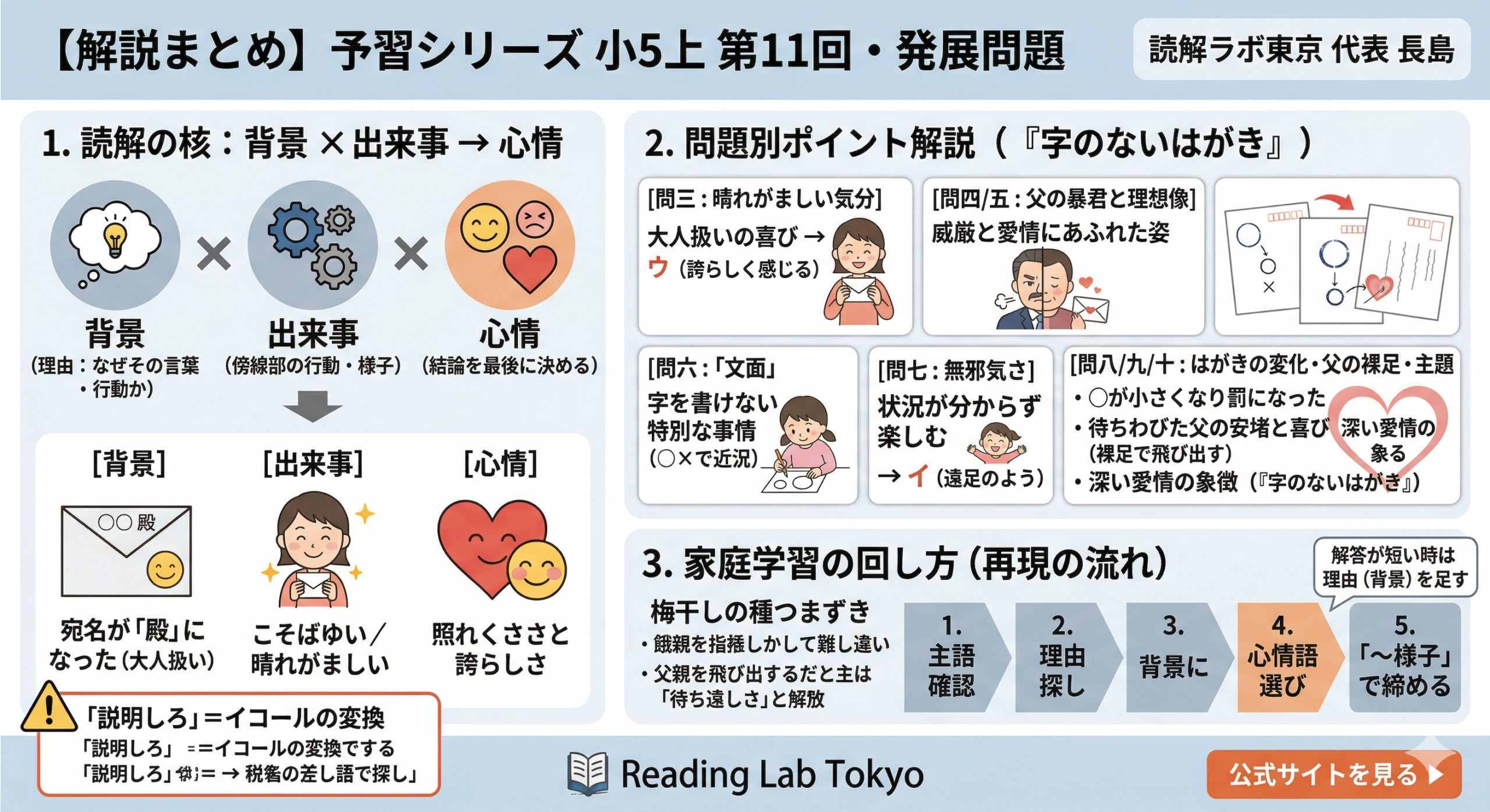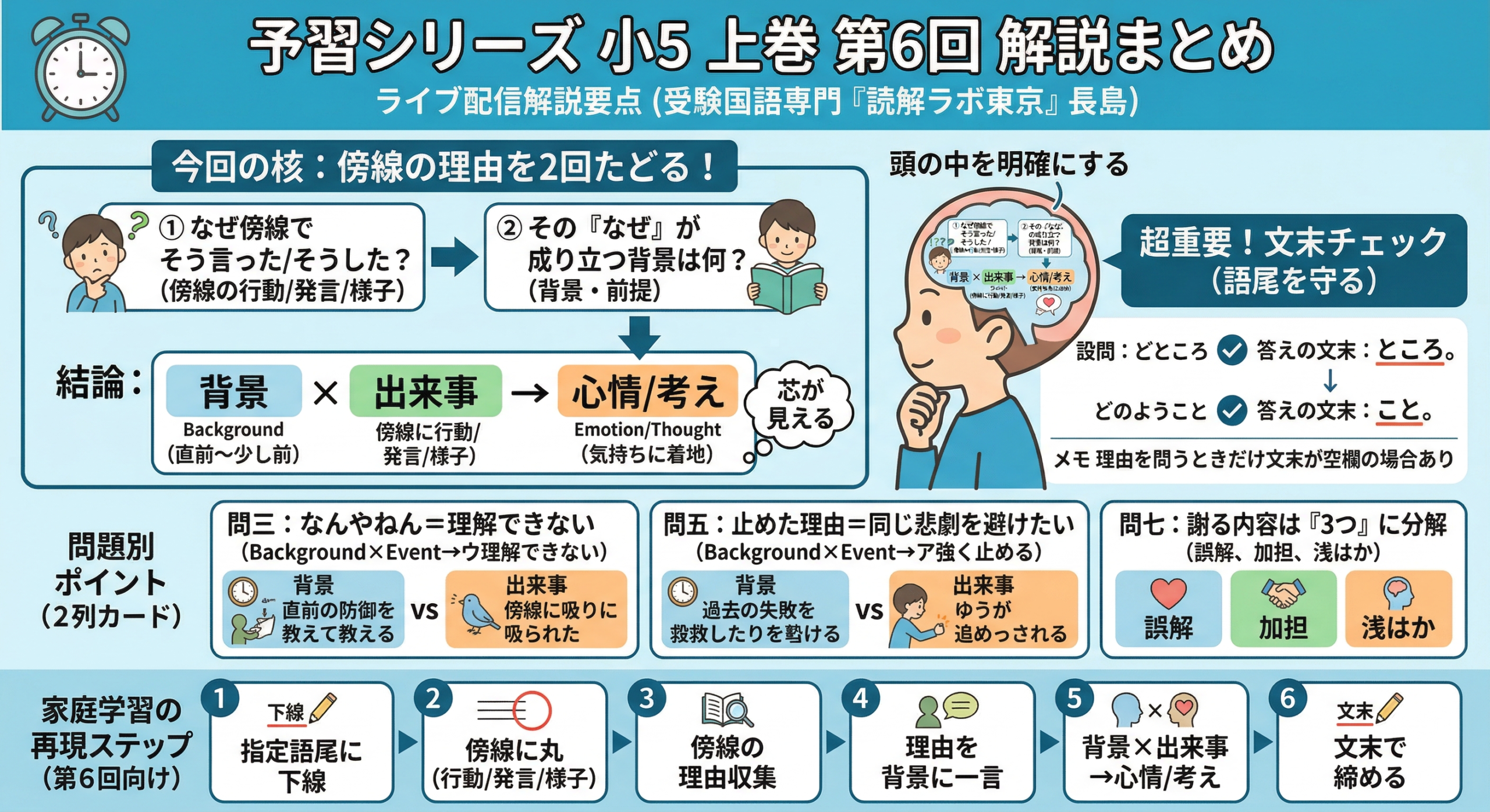 2026年1月24日wpmaster 予習シリーズ小5上巻 第1回の要点解説予習シリーズ 小5 上巻 第1回・発展問題 物語文 【解説まとめ】物語文の心情読解は「背景 × 出来事」で整理する 受験国語専門「読解ラボ東京」代表・長島によるライブ解説(第1回・発展問題)の要点を、 ご家庭で再現できる […]