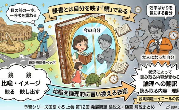 2026年1月29日wpmaster 予習シリーズ小5上巻 第12回の要点解説予習シリーズ 小5 上巻 第12回・発展問題 論説文・随筆 【解説まとめ】読書とは自分を映す「鏡」である 受験国語専門「読解ラボ東京」代表・長島によるライブ解説(小5 上巻 第12回・発展問題)の要点を整理しました。 今 […]