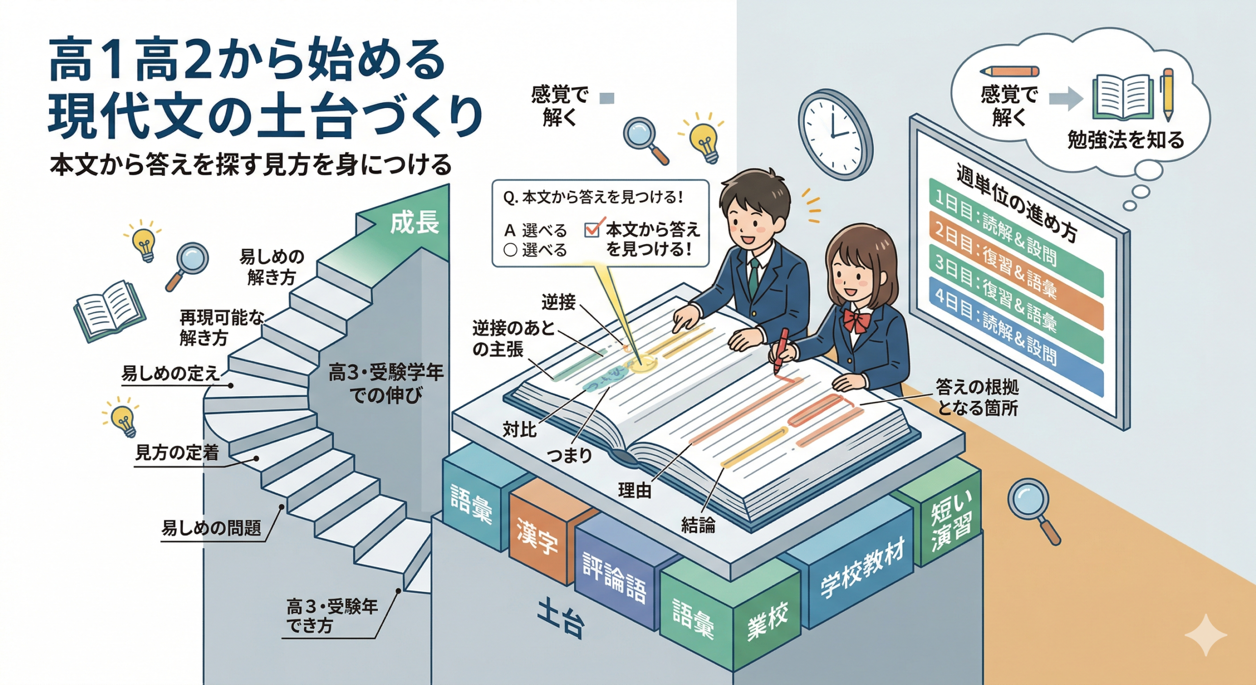 2026年3月13日wpmaster 高1高2から始める現代文の土台づくりで押さえたい進め方の基本高1・高2向け 現代文の先取り準備 高1高2から始める現代文の土台づくりで押さえたい進め方の基本 高1・高2のうちから現代文を後回しにしたくないと考えていても、実際に何をどう始めればよいのか分かりにくいと感じる方は少なく […]