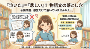 この両者を混同すると、方法論を身に付ければ伸びる受験の国語を捉えどころのないものだと勘違いしてしまい、勉強しても伸びない科目だと誤解してしまうのでしょう。実は、受験産業の先生の中にも学校的な国語指導をなさる方が多くいらっしゃいます。それがとても大切なものである以上、お気持ちは痛いほどよくわかります。