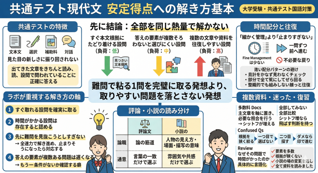 先に結論:共通テスト現代文は「全部を同じ熱量で解かない」ことが重要です