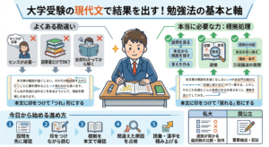 模試や過去問では、どこを速く取れたか、どこで手が止まったか、なぜ遅れたかまで確認してみてください。その視点が入ると、現代文の対策は一気に実戦的になります。