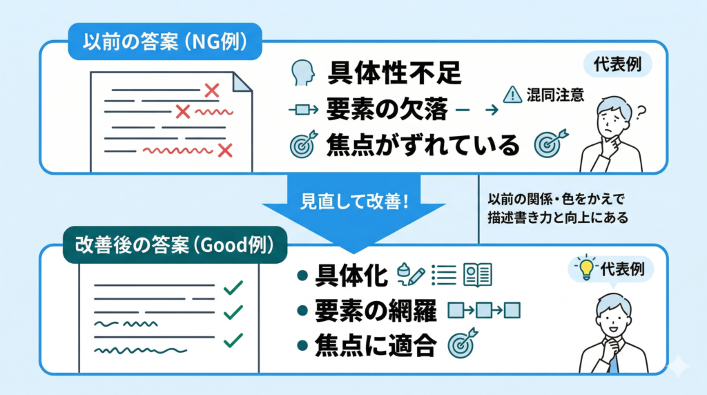 「どこを直せば良い答案になるのか分からない」「なんとなく書いているだけになってしまう」──そんな記述の悩みに対して、