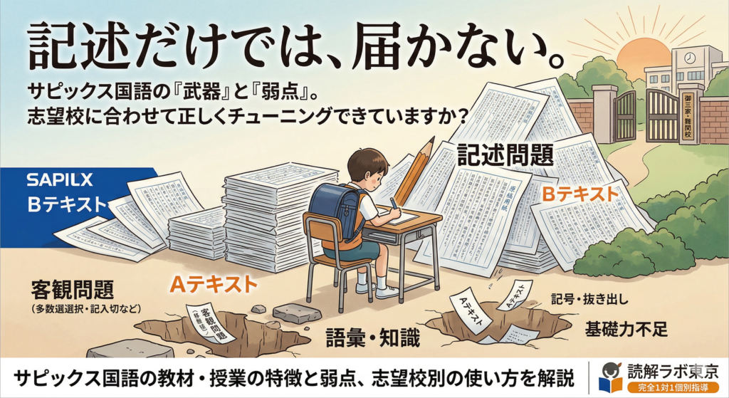 このページでは、サピックス国語の教材・授業の特徴と弱点、志望校別の使い方、家庭で補うべきポイント、そして当塾で行っているサポートについて整理して解説します。