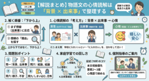 - 確認:主人公の受け止め(心の着地)を本文の言葉で言えるか