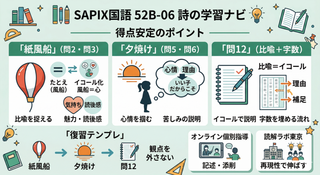 SAPIX 52B-06の全体像|詩は「比喩→読後感」「心情→苦しみ」で押さえる
