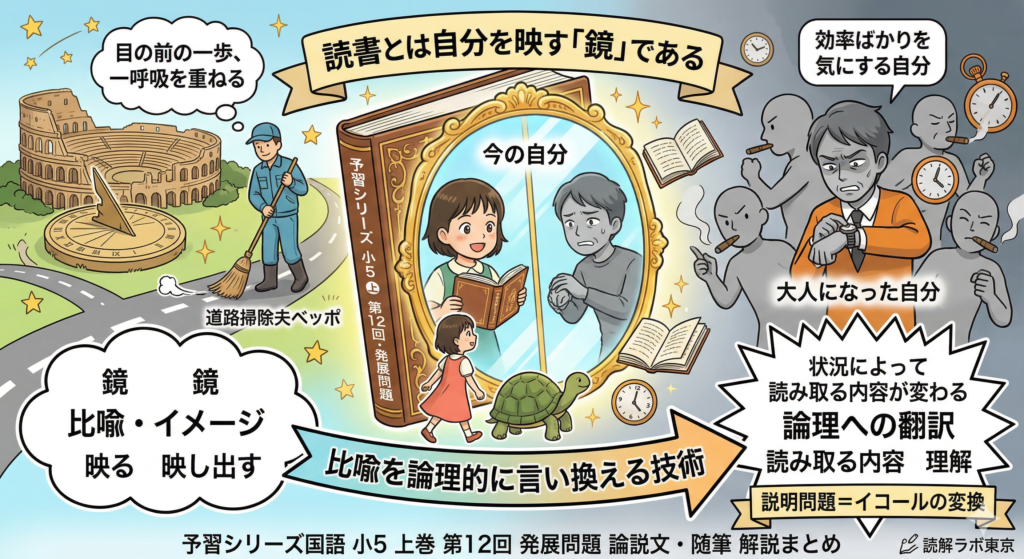 今回の核は、「比喩(鏡)を論理的に言い換える技術」と、「大人になった自分という時間泥棒」の正体を見抜く構造理解です。