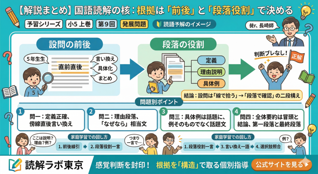 受験国語専門「読解ラボ東京」代表・長島によるライブ解説(小5 上巻 第9回)の要点を、